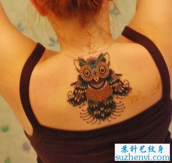 背部的猫头鹰纹身_后背纹身图案大全_纹身图吧