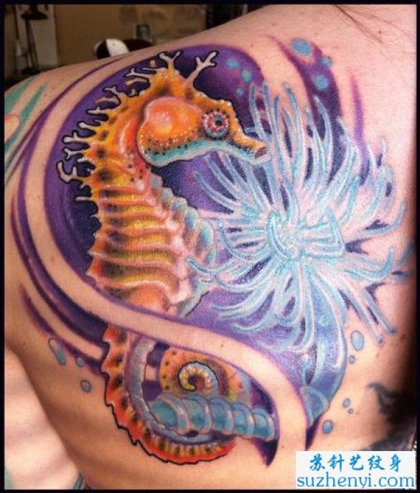 背部可爱海马纹身_后背纹身图案大全_纹身图吧