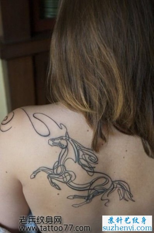 美女背部马纹身_后背纹身图案大全_纹身图吧