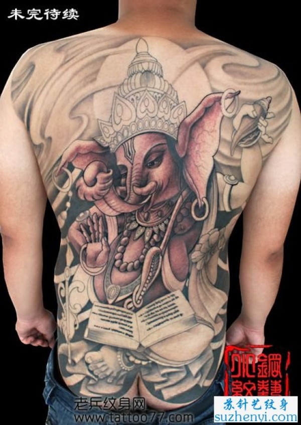 满背象神纹身_后背纹身图案大全_纹身图吧