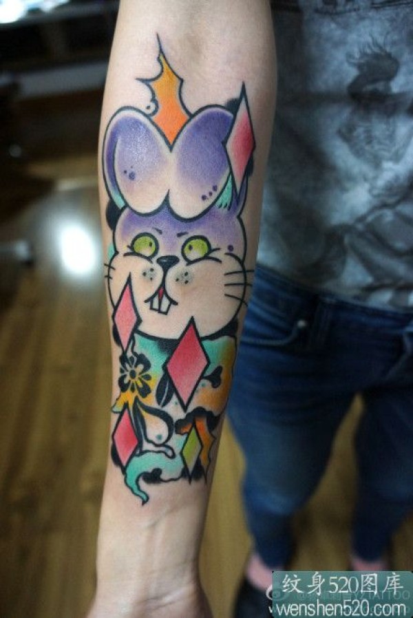 手臂上的龅牙兔刺青_臂部纹身图案大全_纹身图吧