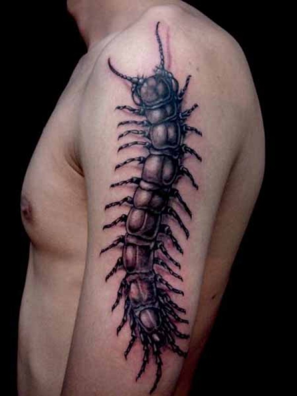 左手臂上黑色蜈蚣纹身图案_臂部纹身图案大全_纹身图吧