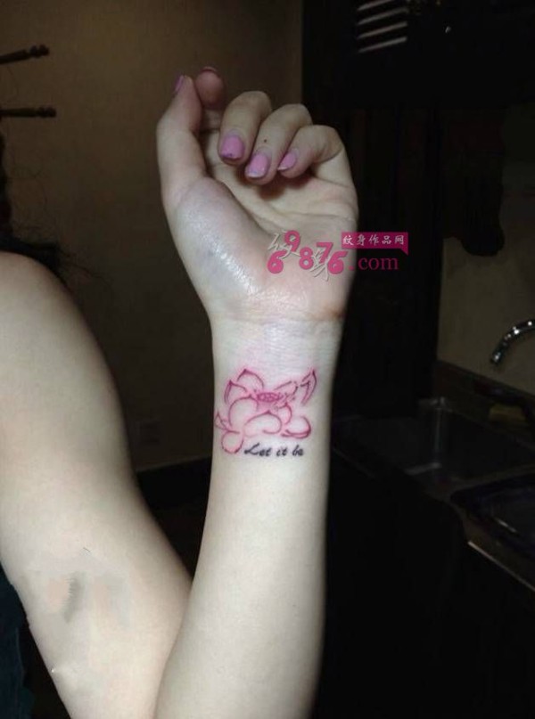 粉色小莲花时尚手臂纹身_臂部纹身图案大全_纹身图吧