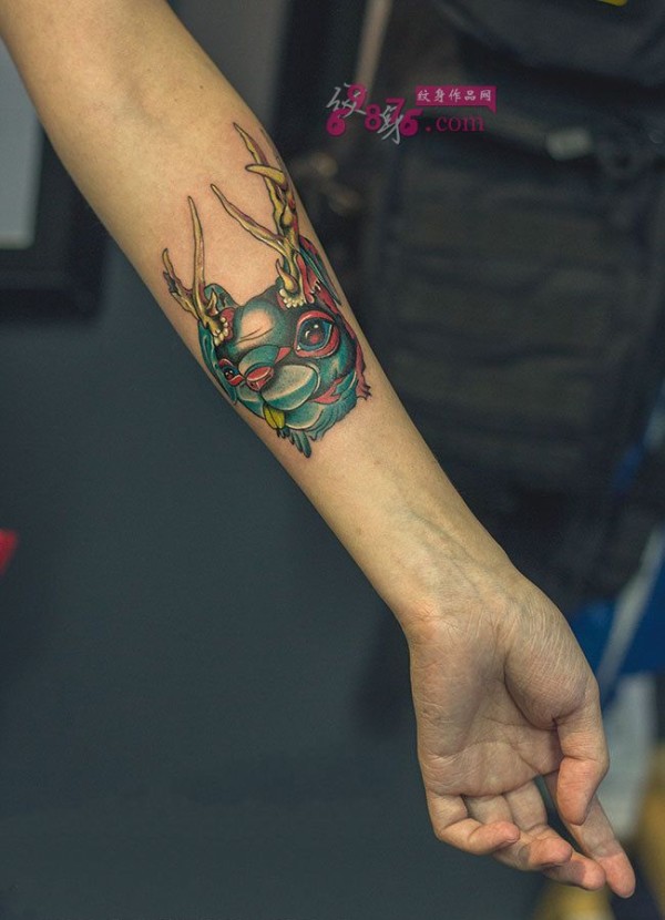 彩色鹿头手臂时尚纹身_臂部纹身图案大全_纹身图吧