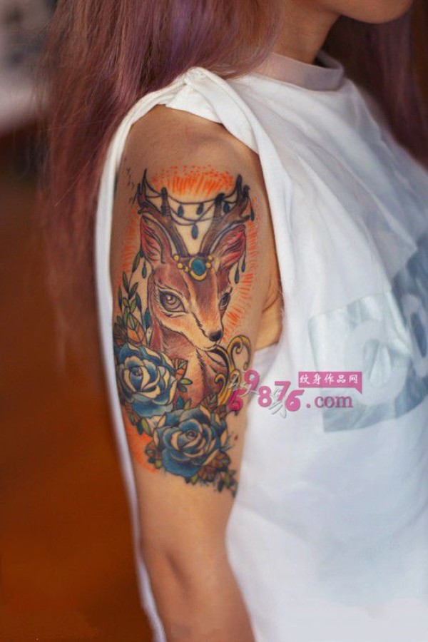 小幼鹿花臂创意纹身_臂部纹身图案大全_纹身图吧