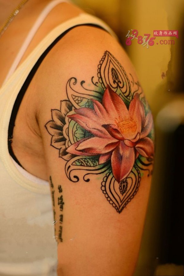 艳丽的荷花手臂纹身_臂部纹身图案大全_纹身图吧