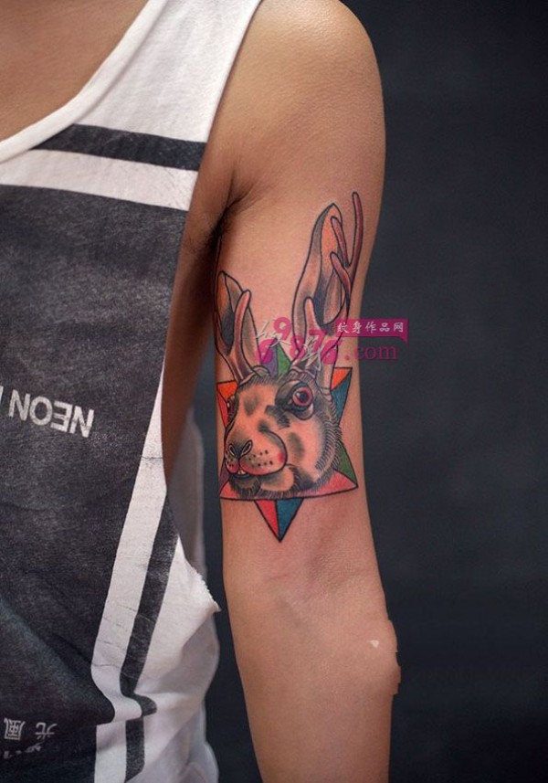 创意鹿头像手臂纹身_臂部纹身图案大全_纹身图吧