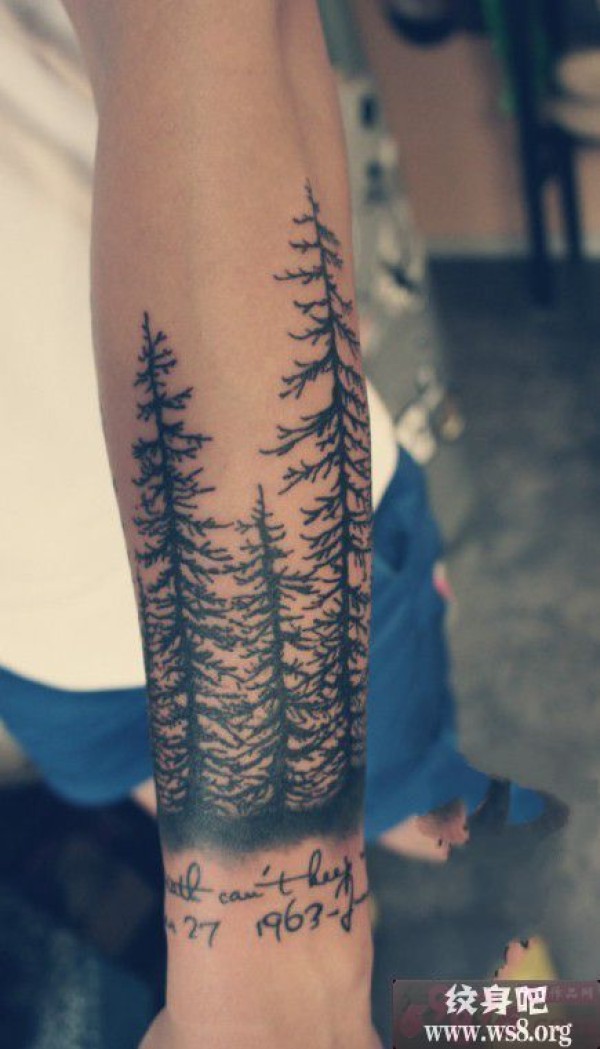 茂盛的松树手臂纹身图案_臂部纹身图案大全_纹身图吧