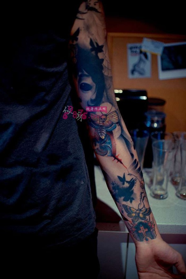 艺术黑灰创意花臂纹身_臂部纹身图案大全_纹身图吧