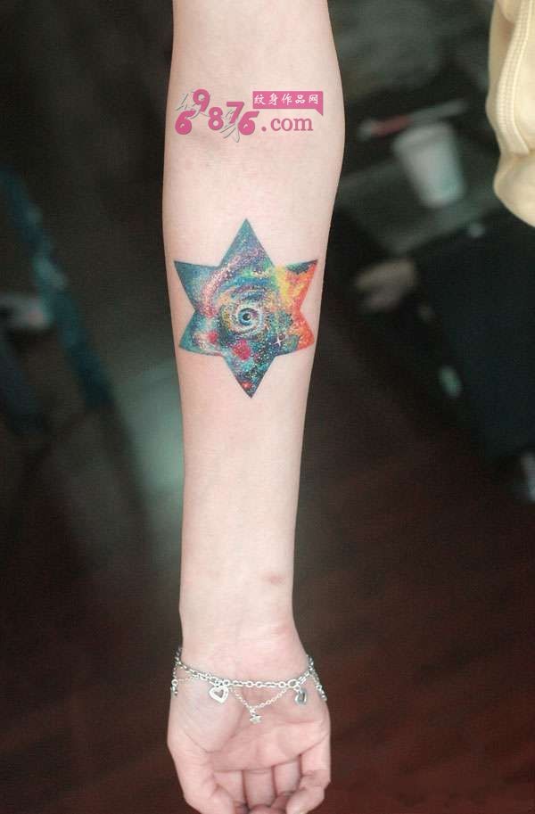 手臂彩色五角星纹身_臂部纹身图案大全_纹身图吧