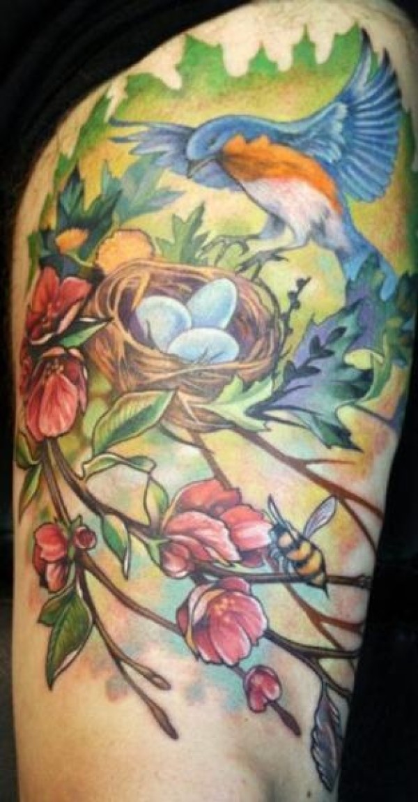 手臂彩色老鹰回巢纹身图_臂部纹身图案大全_纹身图吧