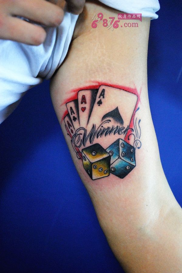 创意扑克骰子大臂内侧纹身_臂部纹身图案大全_纹身图吧