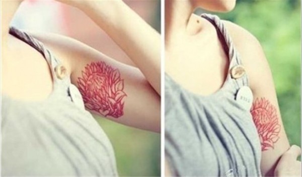 女性手臂红色莲花漂亮优雅女人刺青_臂部纹身图案大全_纹身图吧