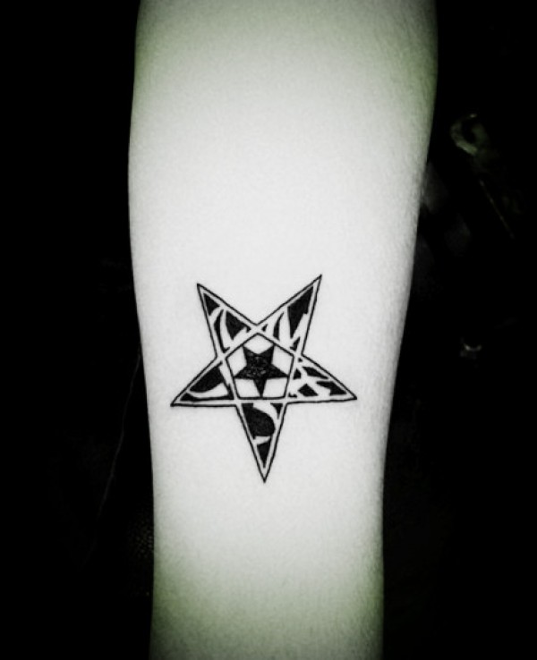 手臂黑色五角星帅气时尚独特刺青_臂部纹身图案大全_纹身图吧