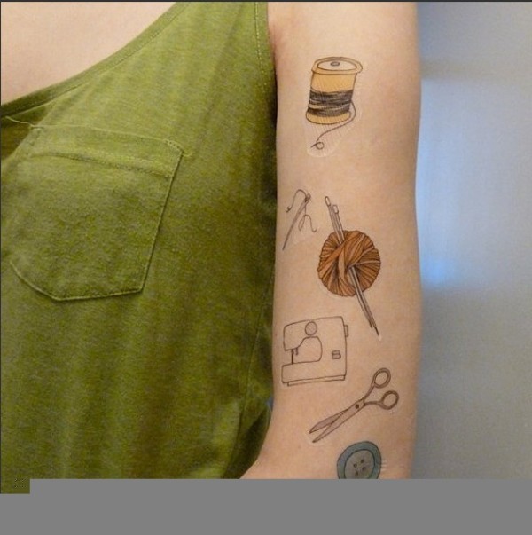 女性手臂彩色创意织道具刺青_臂部纹身图案大全_纹身图吧