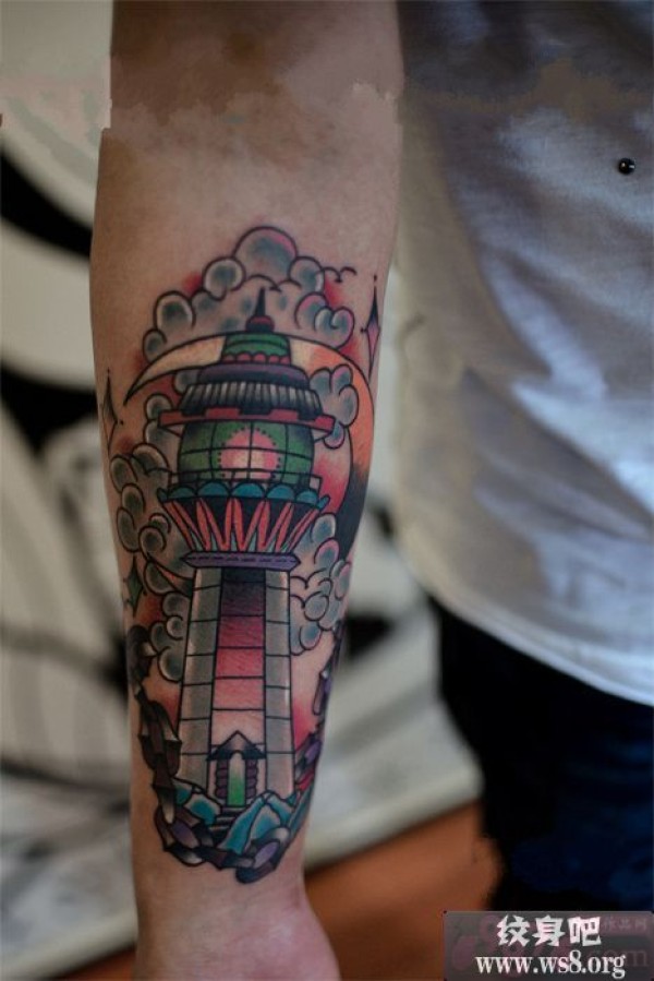 创意彩绘灯塔caihuidengta艺术手臂纹身图案_臂部纹身图案大全_纹身图吧