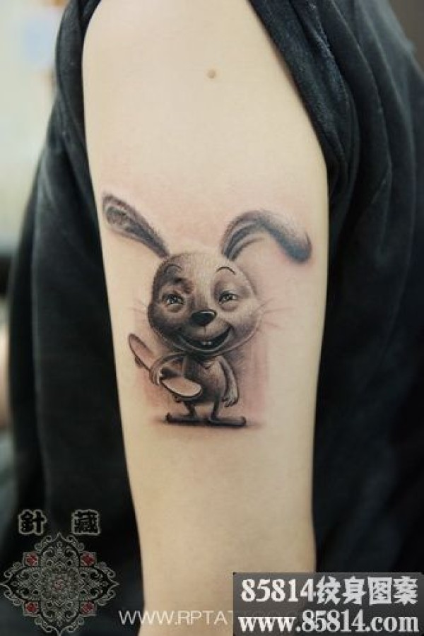 女性手臂上的长耳小兔子作品_臂部纹身图案大全_纹身图吧