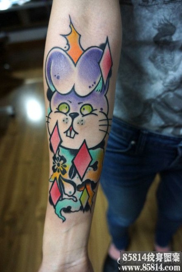 手臂上的龅牙兔纹身作品_臂部纹身图案大全_纹身图吧