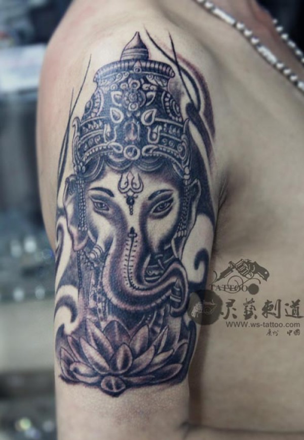 男性右手臂上的象神纹身作品 灵艺刺道纹身作_臂部纹身图案大全_纹身图吧