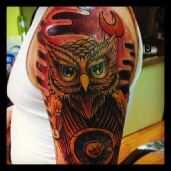 霸气猫头鹰手臂纹身_臂部纹身图案大全_纹身图吧
