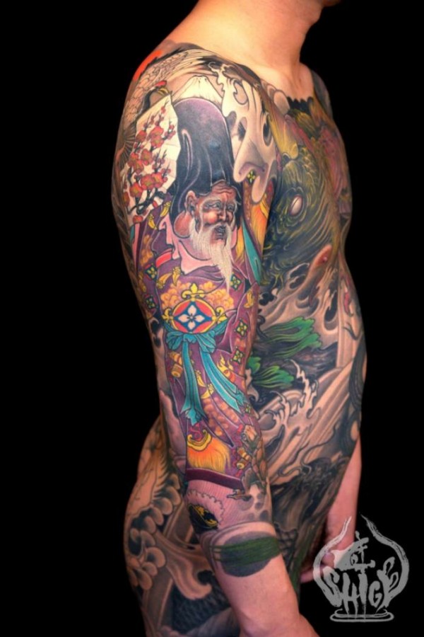 寿星纹身花臂_臂部纹身图案大全_纹身图吧