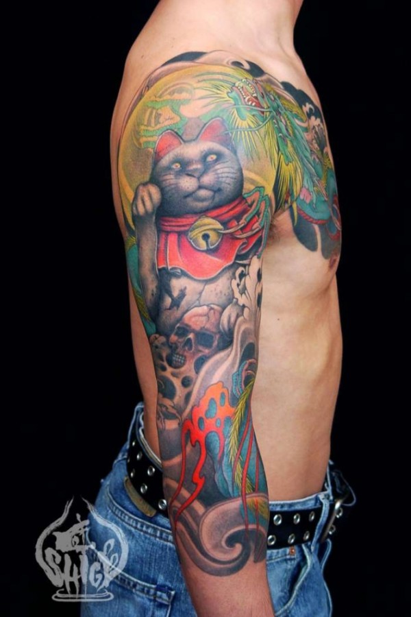 招财猫花臂_臂部纹身图案大全_纹身图吧