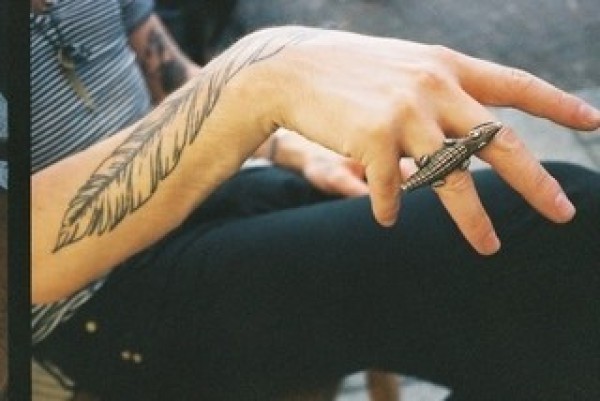 男人手臂羽毛纹身图案图片_臂部纹身图案大全_纹身图吧