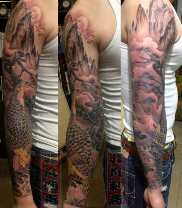 山水画花臂_臂部纹身图案大全_纹身图吧