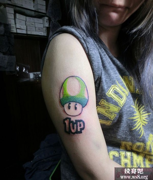 绿色马里奥蘑菇手臂纹身图案_臂部纹身图案大全_纹身图吧