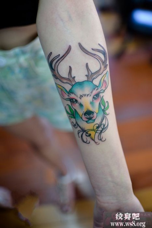 小臂内侧彩绘鹿头纹身图案_臂部纹身图案大全_纹身图吧
