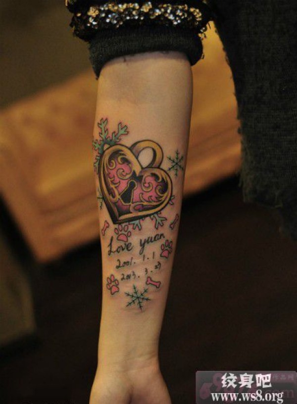 创意雪花心锁手臂纹身图案_臂部纹身图案大全_纹身图吧
