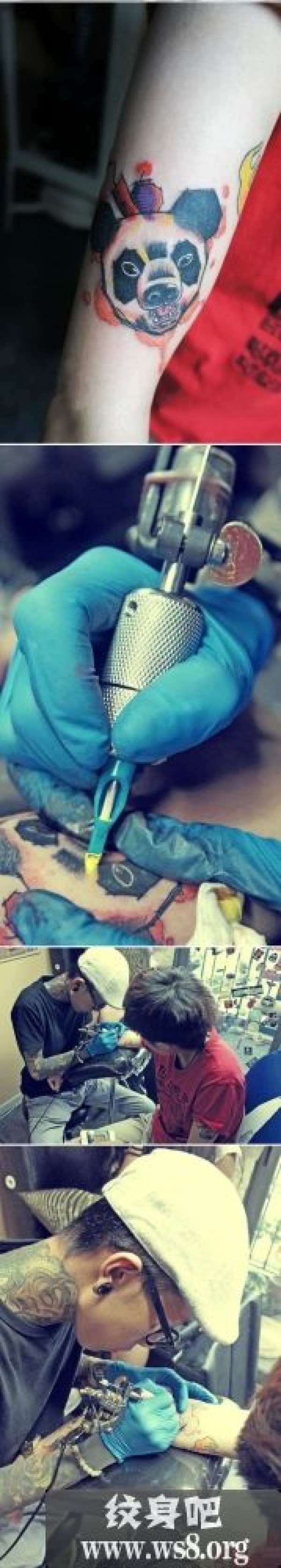手臂创意熊猫刺青现场图案_臂部纹身图案大全_纹身图吧