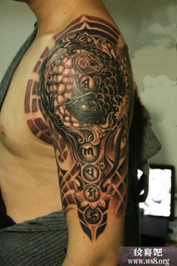 霸气太极阴阳八卦鱼手臂刺青图案_臂部纹身图案大全_纹身图吧