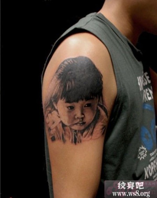 手臂小孩头像纹身图案_臂部纹身图案大全_纹身图吧