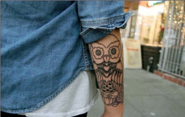 男人手臂猫头鹰刺青_臂部纹身图案大全_纹身图吧