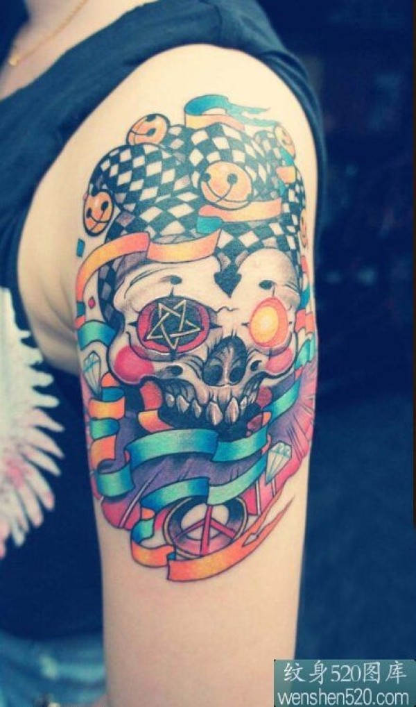 一款手臂彩色小丑纹身图案_臂部纹身图案大全_纹身图吧