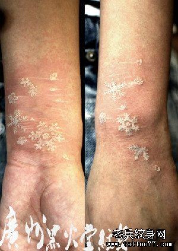 手臂潮流精美的白色雪花纹身图案_臂部纹身图案大全_纹身图吧