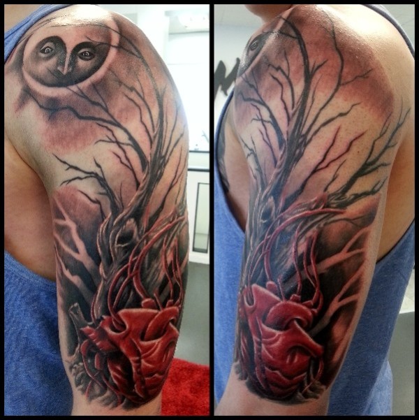 手臂上有个性的心脏纹身_臂部纹身图案大全_纹身图吧