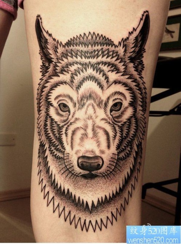 纹身520图库分享一幅大臂狼头纹身图片_臂部纹身图案大全_纹身图吧