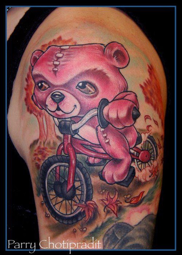 手臂上一款超可爱的小熊纹身_臂部纹身图案大全_纹身图吧