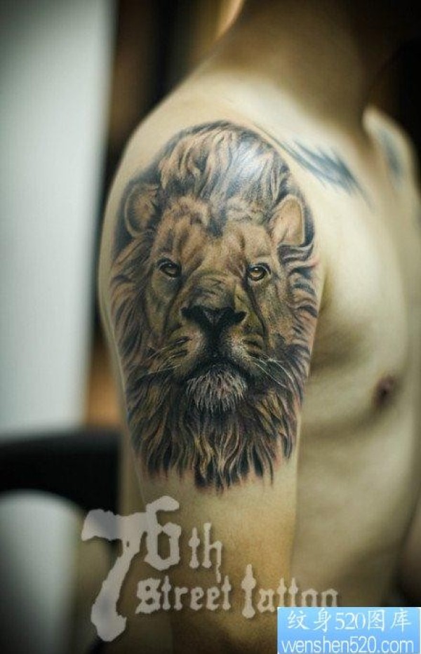 男性手臂经典前卫的彩色狮头纹身图片_臂部纹身图案大全_纹身图吧