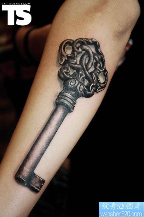 小臂的一张立体钥匙纹身作品_臂部纹身图案大全_纹身图吧