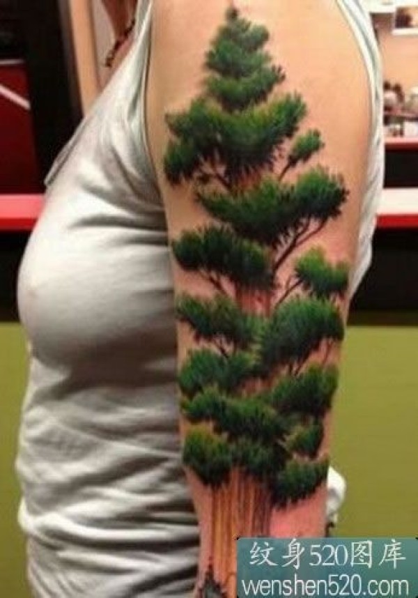 手臂上绿意盎然的树文身欣赏_臂部纹身图案大全_纹身图吧