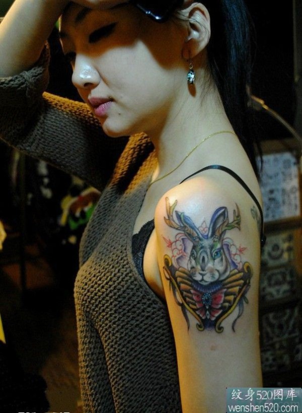 美女手臂上的兔子纹身展示_臂部纹身图案大全_纹身图吧