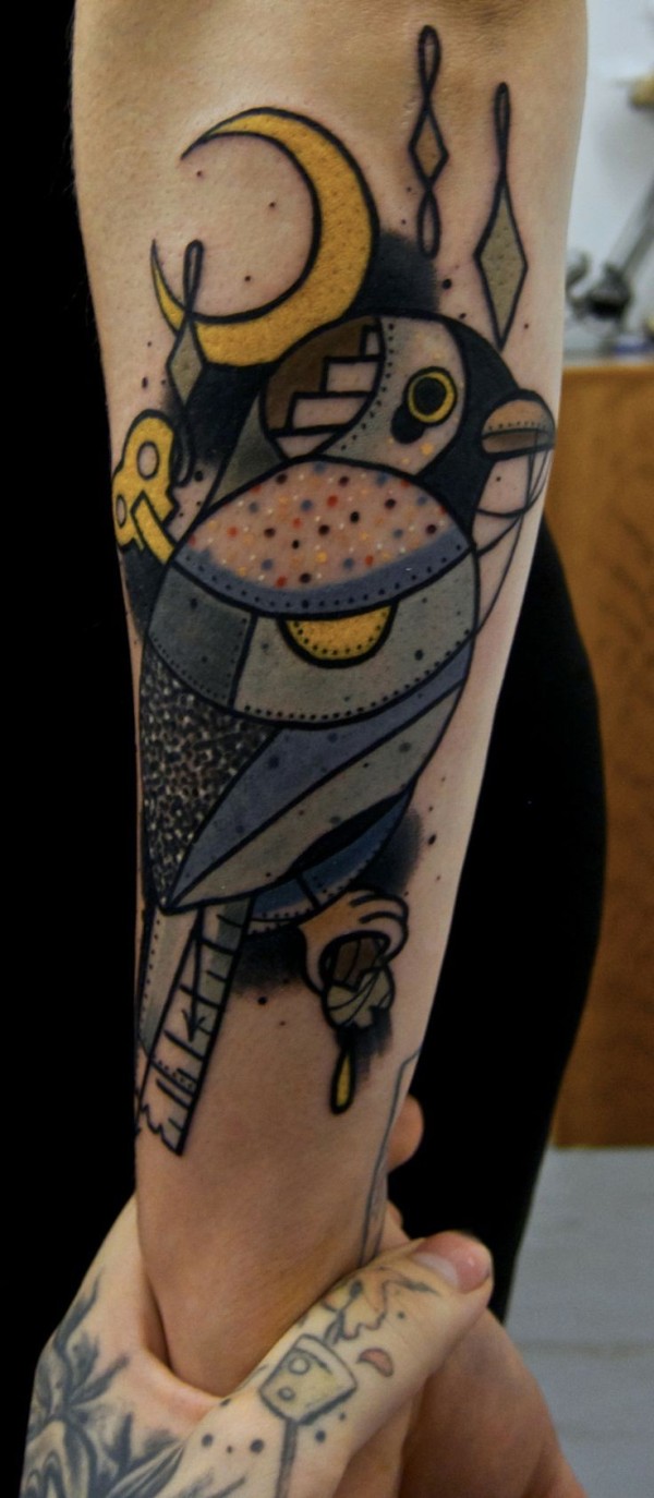 手臂上一只漂亮的小鸟纹身_臂部纹身图案大全_纹身图吧