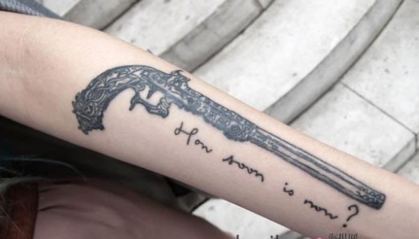 炫酷的手臂手枪纹身_臂部纹身图案大全_纹身图吧