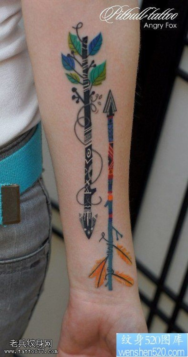 手臂彩色箭头纹身图案_臂部纹身图案大全_纹身图吧