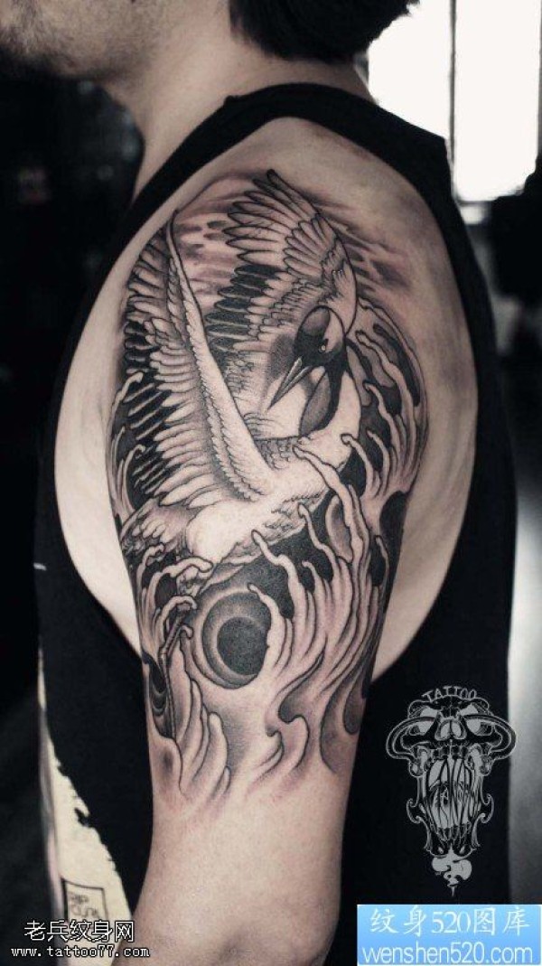 纹身520图库提供一款手臂仙鹤纹身图案_臂部纹身图案大全_纹身图吧