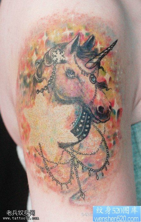 手臂星空彩色星空独角兽纹身图案_臂部纹身图案大全_纹身图吧