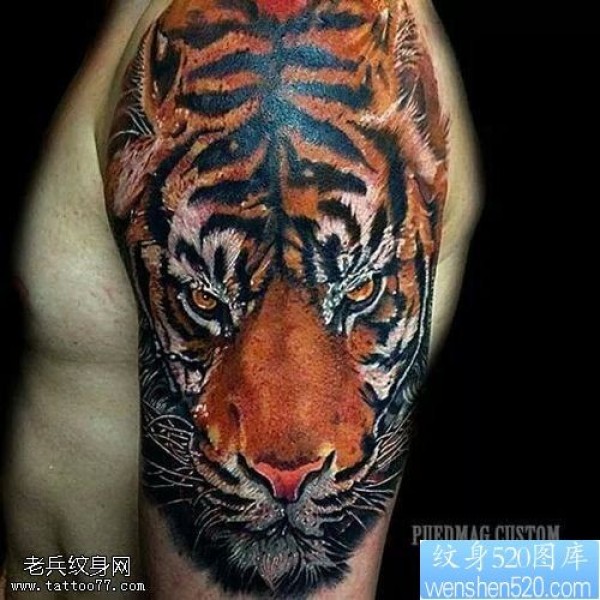 大臂彩色老虎头纹身图案_臂部纹身图案大全_纹身图吧